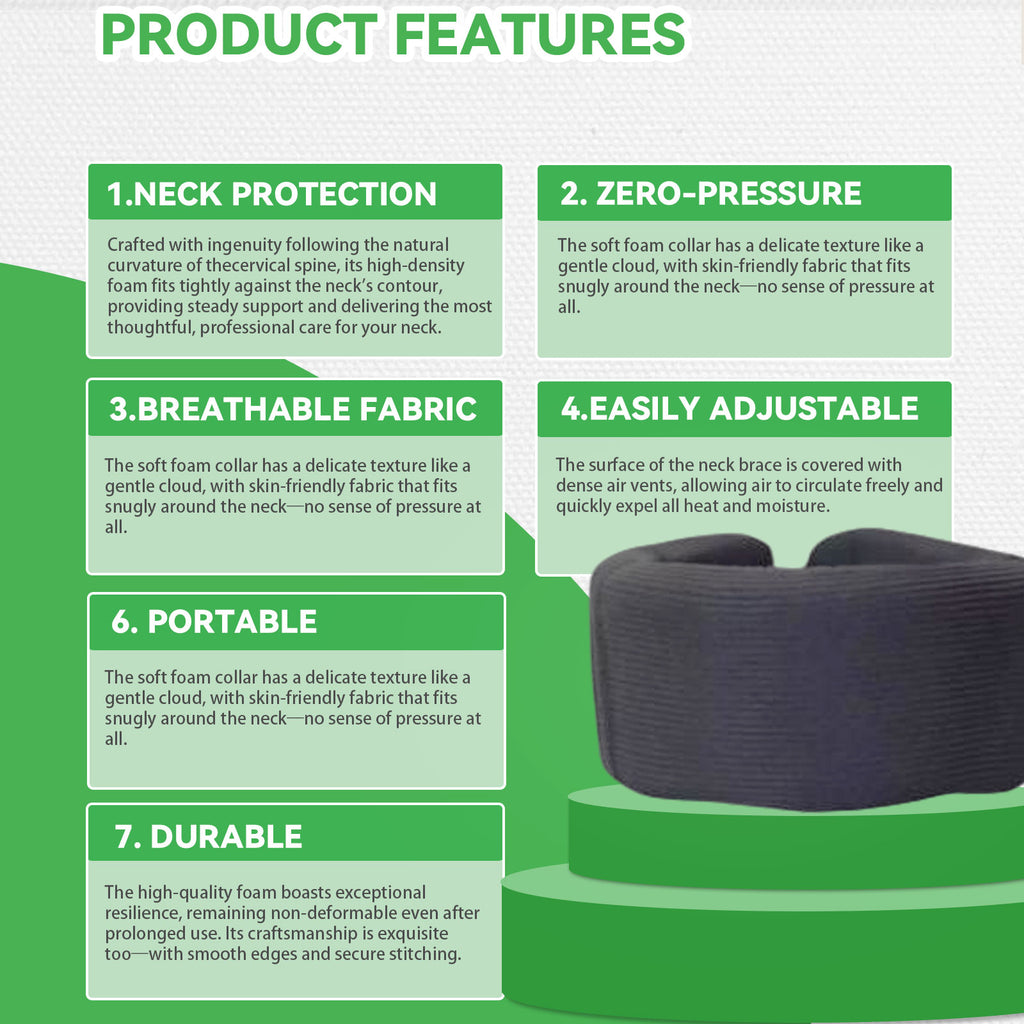 Ditch the stiff, uncomfortable braces. Made from premium, non-rigid, latex-free foam, our soft neck collar provides cloud-like cushioning that is perfectly safe and comfortable to sleep in. It keeps your neck stabilized overnight so you can wake up feeling refreshed and pain-free, without morning stiffness.