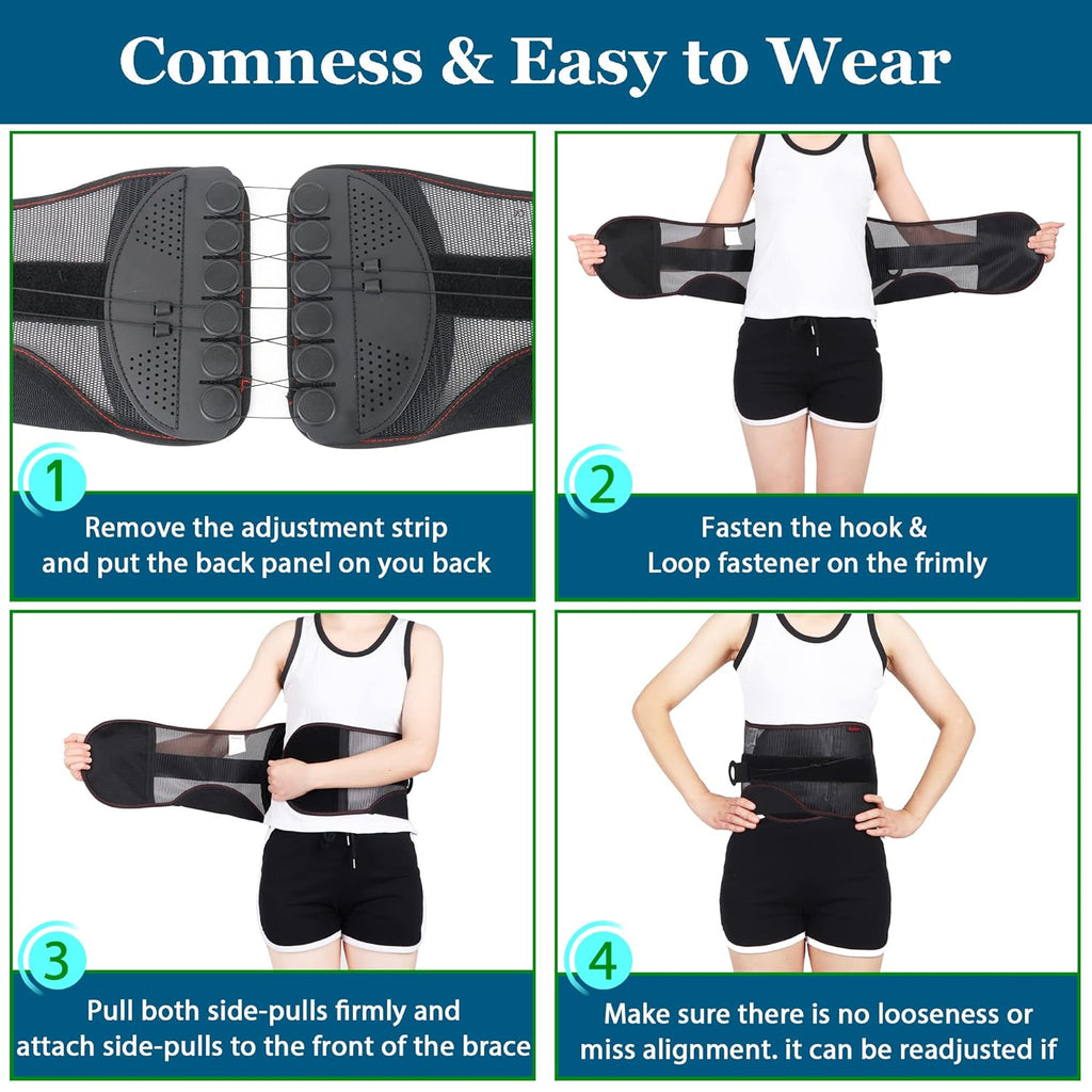 - 【LIGHTWEIGHT& BREATHABLE】Orthomen back belt brace is made of lightweight but super durable materials, and it does not collapse even during strenuous movements such as sports and work. The mesh panel material we used can release excess heat and moisture, so you won't feel like being heavily wrapped and constrained like the other braces. Allows you to stay comfortable even in the summer.
