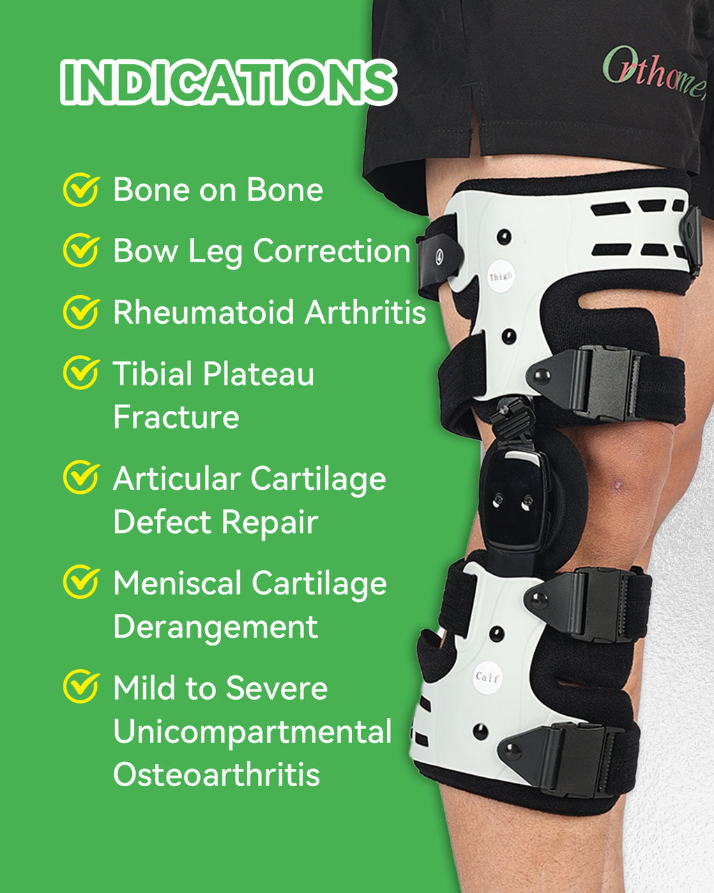 - SUPERIOR REHABILITATION Knee Support to Reduce knee Pain & Knee Inflammation: The OA Knee Brace helps reduce pain in patients who suffer from Rheumatoid Arthritis Knee Pain, Mild to severe unicompartmental Osteoarthritis of the knee, bone on bone knee pain. The knee brace also helps support meniscal cartilage derangement, articular cartilage defect repair, and Avascular necrosis or tibial plateau fracture recovery, and knee cartilage repair.